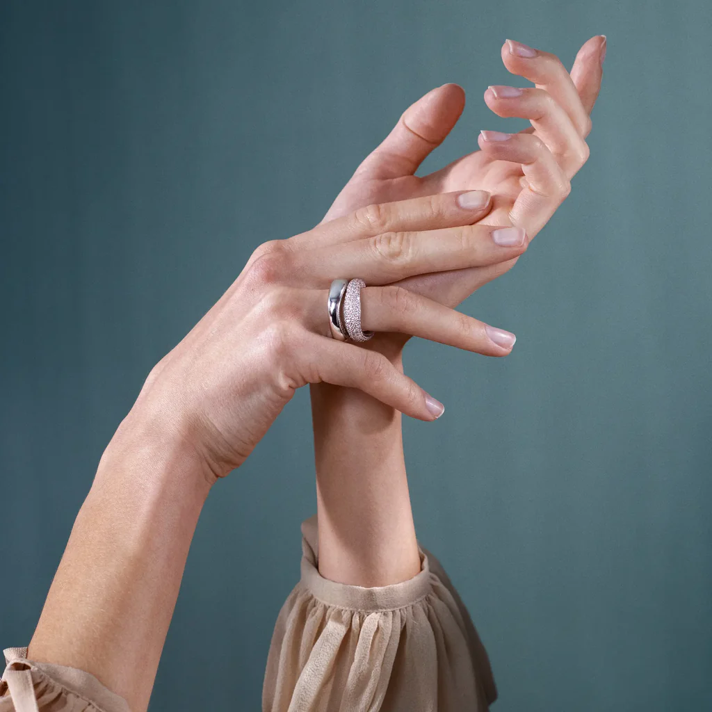 Love No. 5 Ring in 18 karat white gold with 159 diamonds. In total 1.75ct TW.VS. The ring has a polished finish